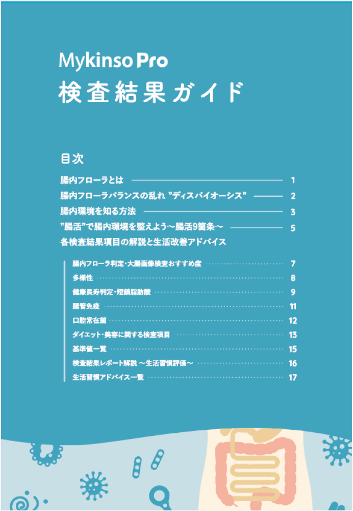 腸内フローラは食事をはじめとする生活習慣の影響を大きく受けています。腸内フローラ検査を実施したあとは、これまでの生活習慣を振り返り、できることから取り入れて食事改善、生活習慣改善を行います。当院では医師が検査結果をふまえてアドバイスをします。また、お持ち帰り用に検査結果の解説や生活習慣アドバイスが載った検査結果ガイドの冊子もお渡ししますので、ご自宅でも参考にしてご覧ください。
